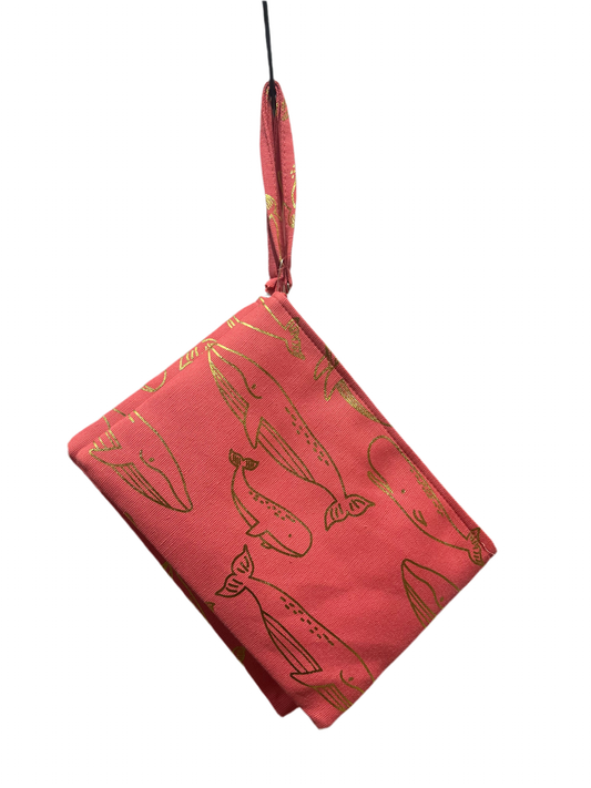 Whale Golden & Pink wristlet wallet , Pouch , Bag