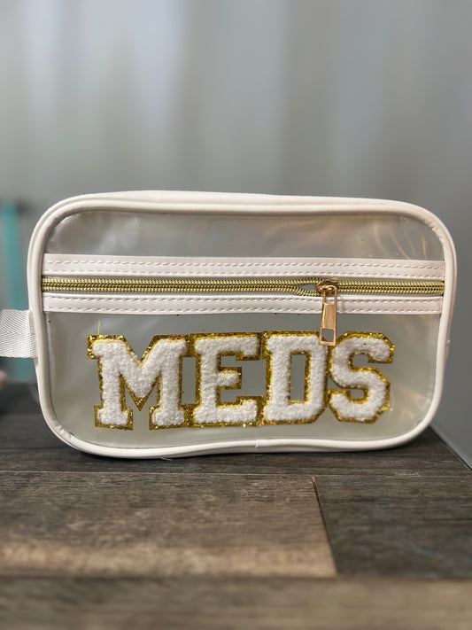 Meds - Travel Cosmetics Bag Clear , Gold & White