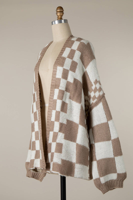 Checkered 2 Toned Color Block Crochet Cardigan