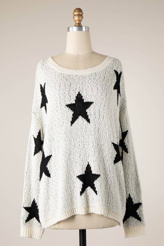 ANCHOR PATTERN KNIT V NECK SWEATER TOP