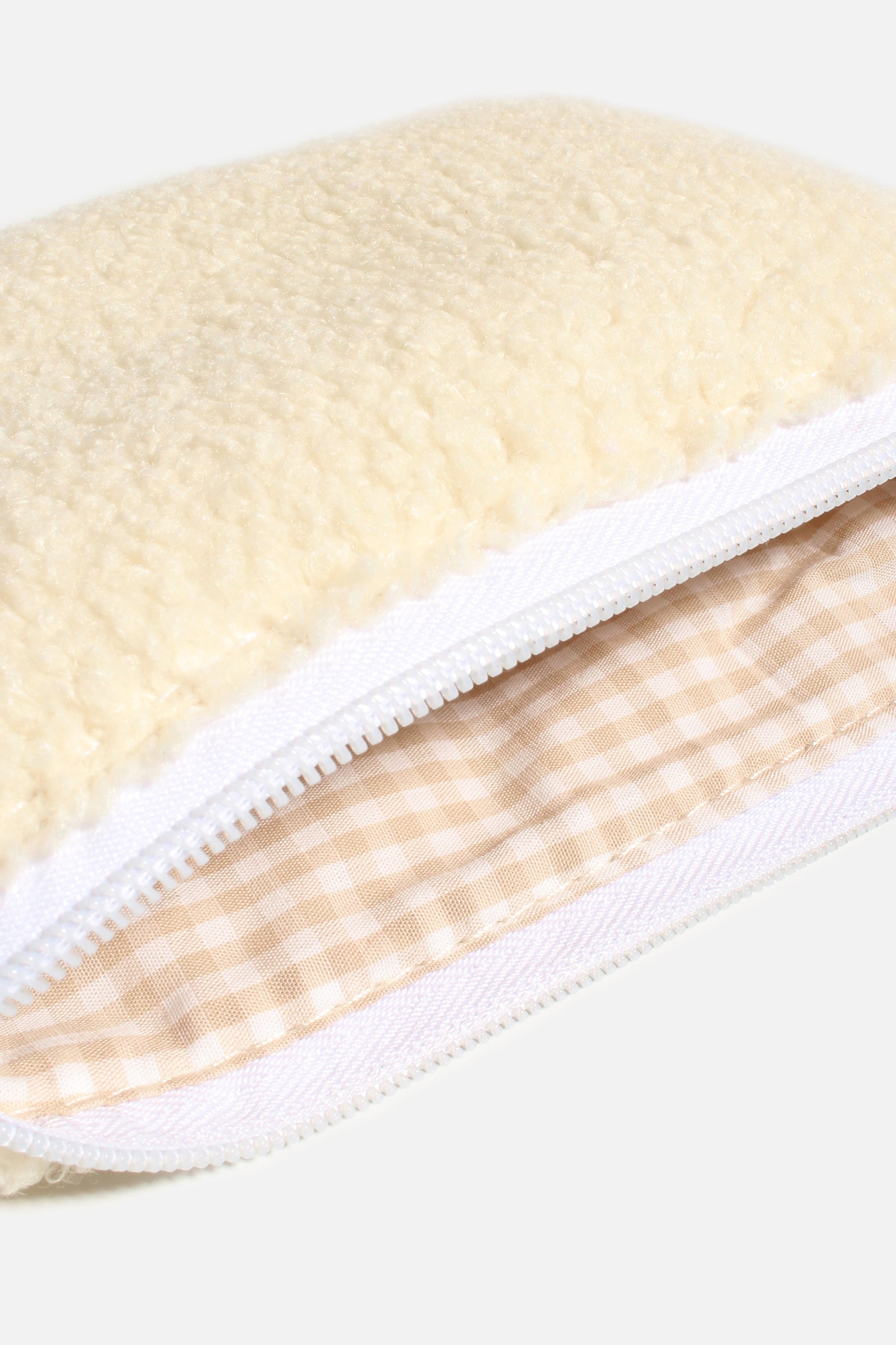 Immerse yourself in the luxurious comfort of our Polar Puff pouch, where cozy elegance meets practicality. These cosmetic pouches offer the perfect blend of spaciousness for your essentials and aesthetic allure. Inside, you'll find an attractive checkered pattern that adds an element of refined charm, while the outer surface is a oasis of softness and fluffiness, making each pouch a tactile joy to carry. Available in soothing cream or gentle pastel purple, these pouches are not just functional but are statements of subtle elegance, perfect for enhancing your everyday style.