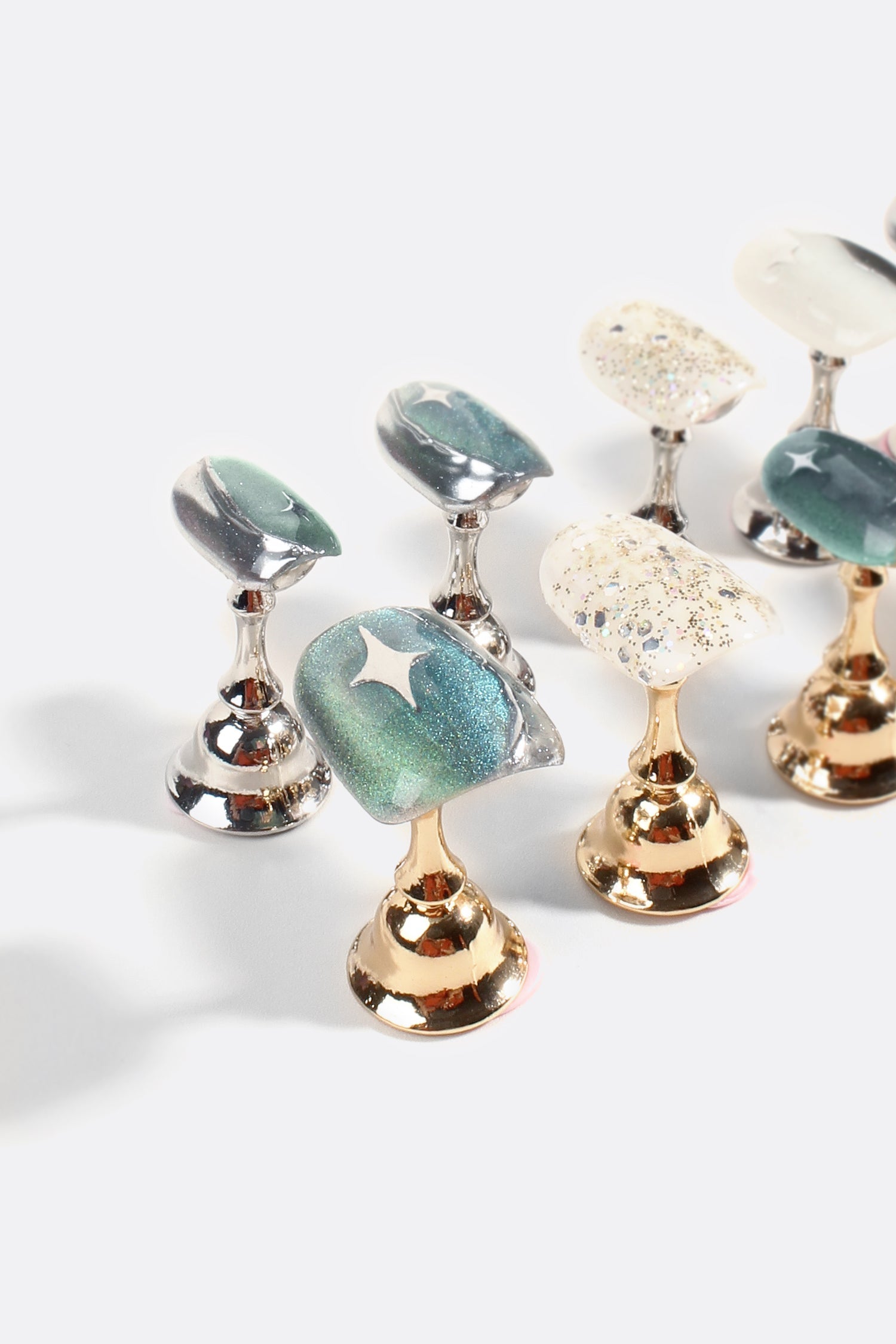 Moving beyond the traditional constraints of 'XS, S, M, and L' sizes, our approach prioritizes individual fit and precision. With our specialized collection, you receive 20 nails across 10 distinct sizes. From dainty fingertips to a bolder width, every hand finds its ideal match.